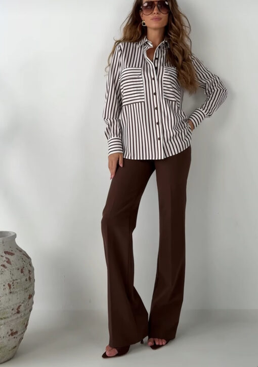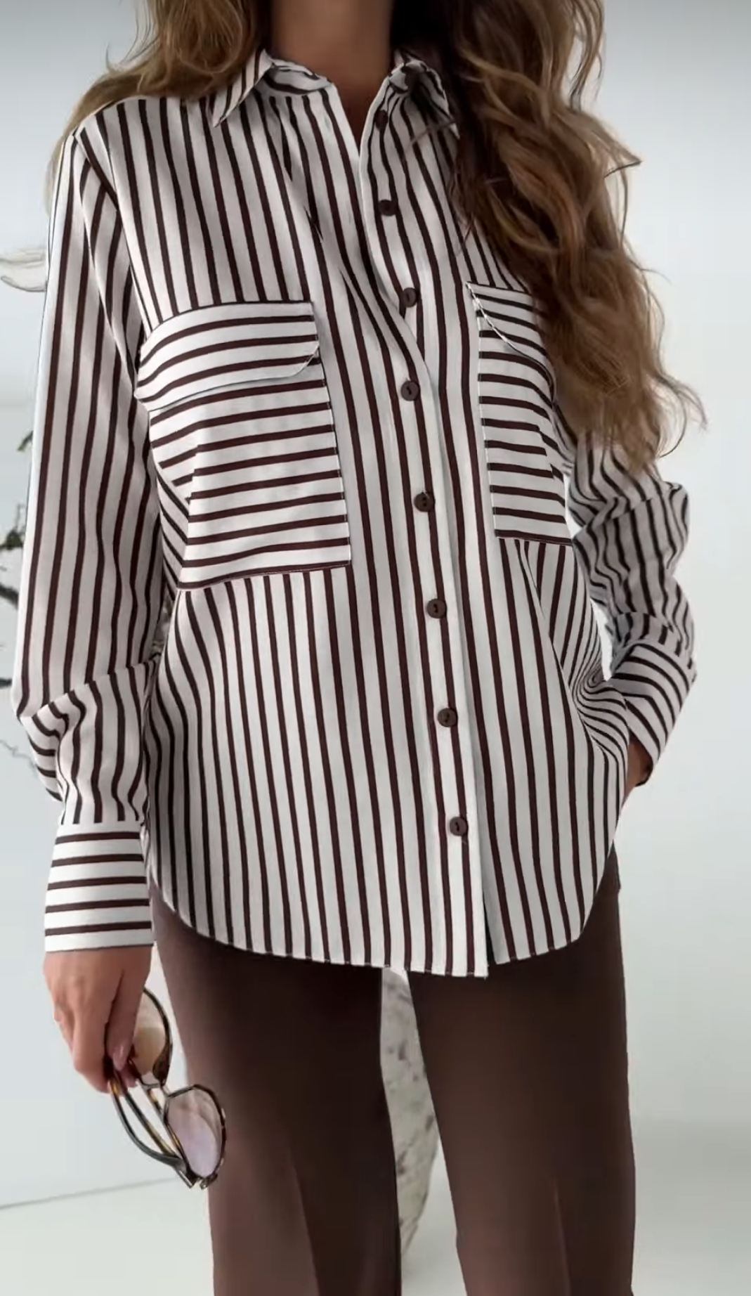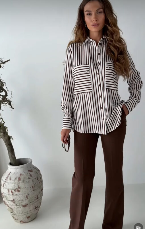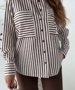 Ilginti dryžuoti marškiniai – patogus ir stilingas pasirinkimas tiek kasdienai, tiek darbui. Lengvai krintantis audinys, užsegami sagomis, dvi dekoratyvinės kišenės priekyje ir kontrastinga dryžuota kombinacija suteikia šiam modeliui išskirtinumo.