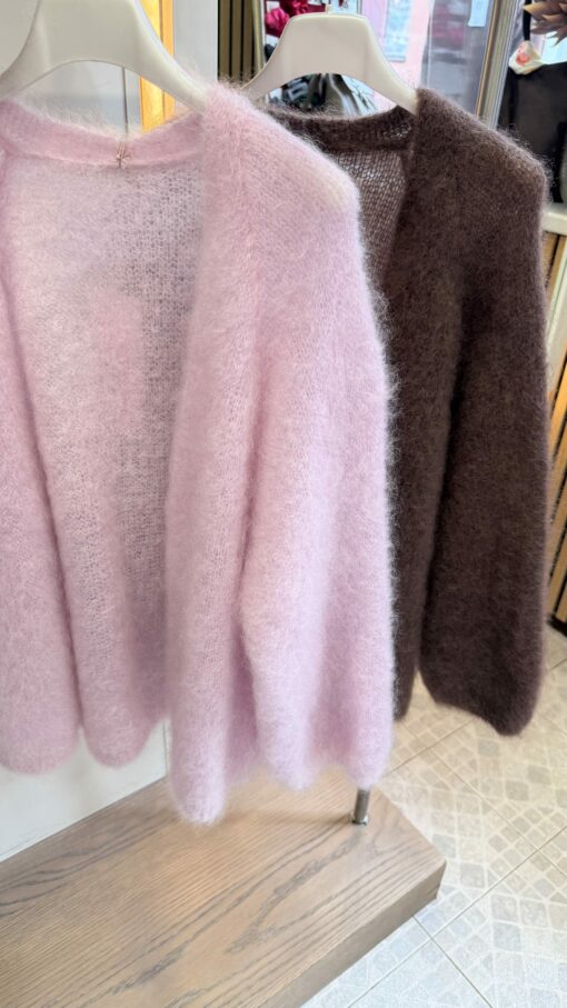 ✨ Kid moheros kardiganai – tai švelnumo, lengvumo ir elegancijos derinys. Kid mohera yra viena prabangiausių vilnų rūšių – ypatingai minkšta, pūkuota, lengva, bet kartu šilta. Todėl tokie megztukai tampa nepakeičiami tiek rudens-žiemos sezonu, tiek pavasarį, kai norisi patogumo ir jaukumo.