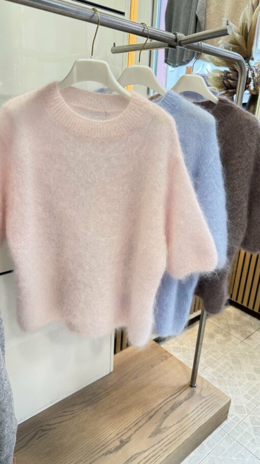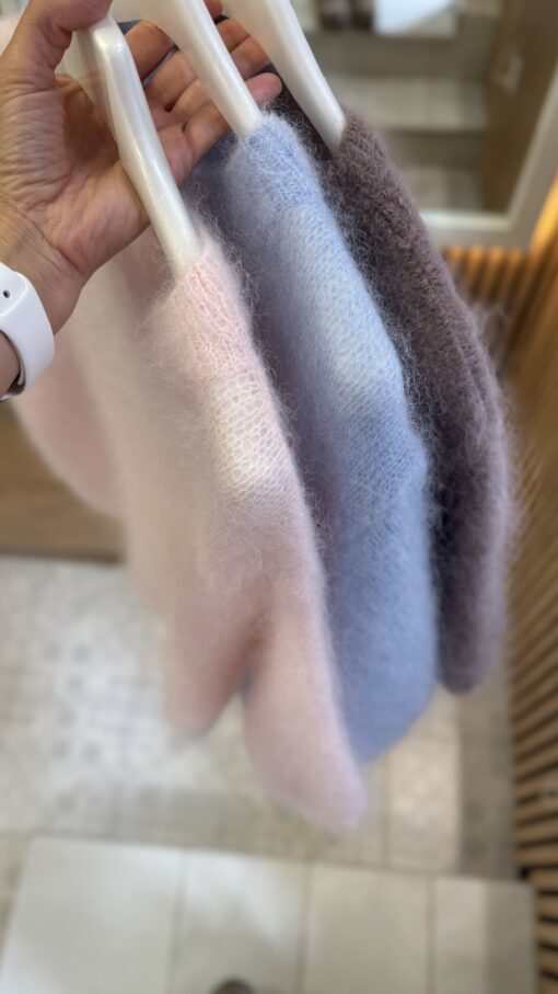 Tai itališkas baby moheros megztinis su pūkeliu. Švelnūs, nekandantys siūlai, prisitaiko prie kūno temperatūros – tinka tiek žiemos sezonu, tiek ir pavasariui. Išmatavimai ties krūtine megztuko iki 130 cm, megztuko ilgis 59 cm.