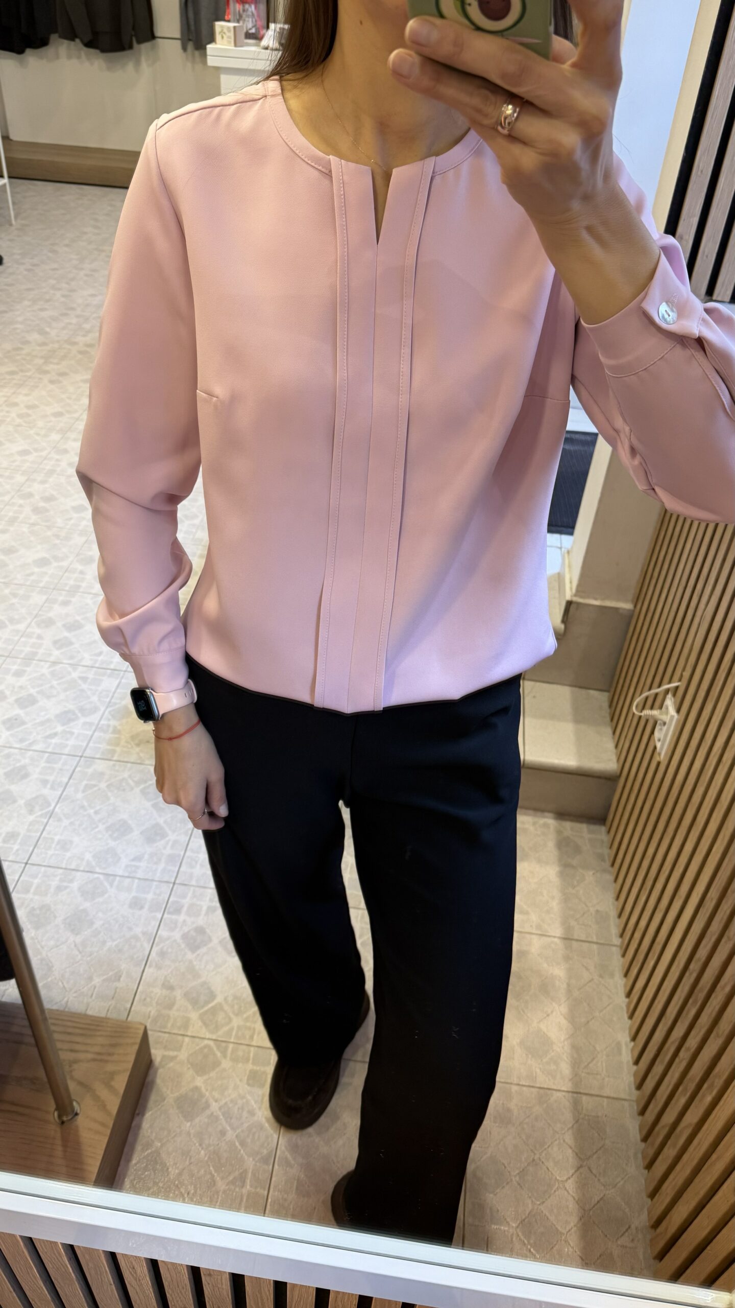 Švelniai rožinė palaidinė – lengvas pavasario dvelksmas Jūsų garderobe. Modelis pasiūtas iš viskozės ir poliesterio mišinio, todėl audinys yra tvirtas, malonus kūnui ir praktiškai neglamžus – puikus pasirinkimas aktyviai kasdienai ar darbui.
